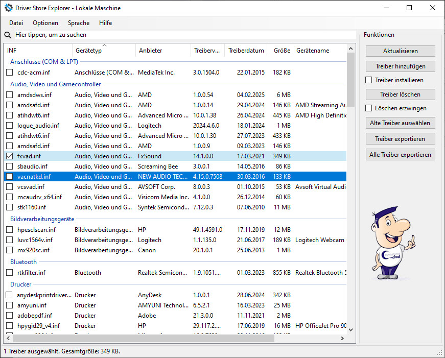 » Treiber auflisten, gezielt löschen oder neu hinzufügen «