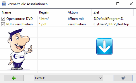 DropIt nimmt Ihnen bei verschiedenen Dateiaktionen so manchen Mausklick ab. Sie möchten bspw. die Dateien des Ordners, der die Downloads Ihres Internet Browsers aufnimmt, automatisch sortieren lassen. Hierfür müssen Sie zunächst Regeln für die möglichen Dateitypen einrichten. Dazu können EXE-, ZIP-, PDF-, Bilddateien etc. gehören. Angenommen, Sie möchten die PDF-Dateien von diesem Ordner in einen anderen Ordner verschieben lassen. Klicken Sie mit der rechten Maustaste auf den DropIt-Button und gehen zu den Assoziationen. Nach einem Klick auf den Neu-Button tragen Sie einen passenden Namen wie z. B. "PDFs verschieben" ein. In das Regel-Feld kommt der Filter für den Dateityp, also *.pdf. Es sind hier mehrere Regeln erlaubt, die durch das ;-Zeichen zu trennen sind.