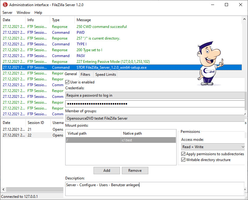 FileZilla Server ist ein FTP-Server, durch den Sie anderen erlauben, Dateien über eine verschlüsselte Verbindung (FTP über TLS) von Ihrer Festplatte zu laden. Dazu benötigt der User lediglich einen FTP-Client wie den
