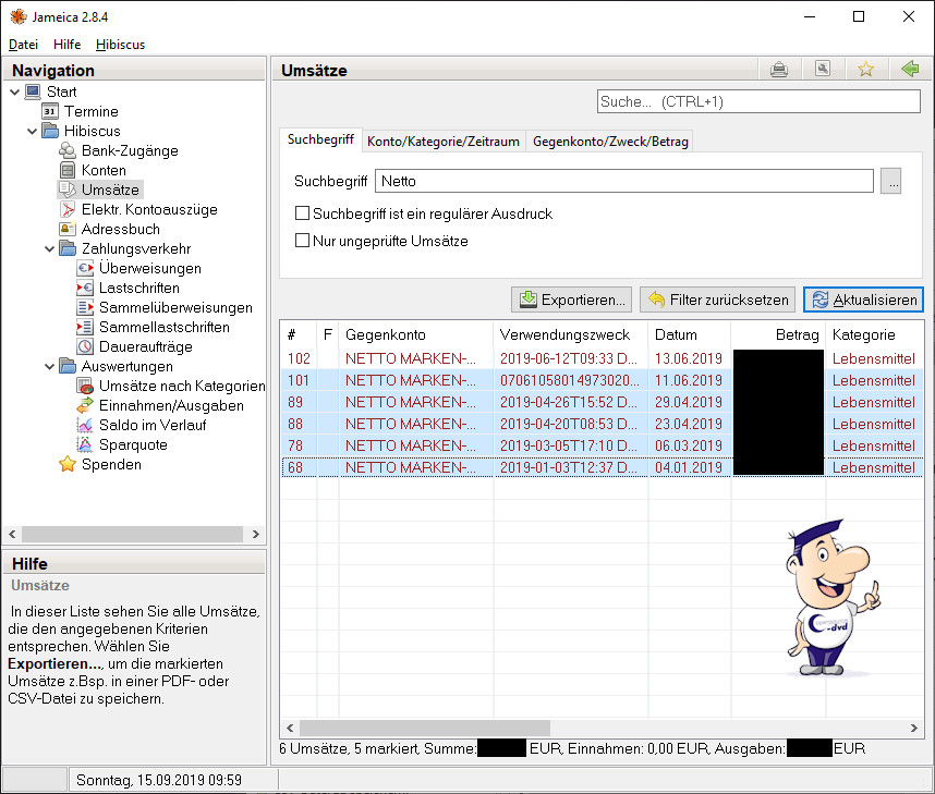 Die Kontenbewegungen exportieren Sie ggf. in Formate wie PDF, CSV und HTML. Das Programm erfüllt inzwischen alle PSD2-Anforderungen. Unterstützt werden auch der Einsatz einer DDV-Chipkarte, Schlüsseldatei sowie die Authentifizierung mittels PIN/TAN. Schnittstellen zu weiteren Kreditinstituten finden Sie auf der