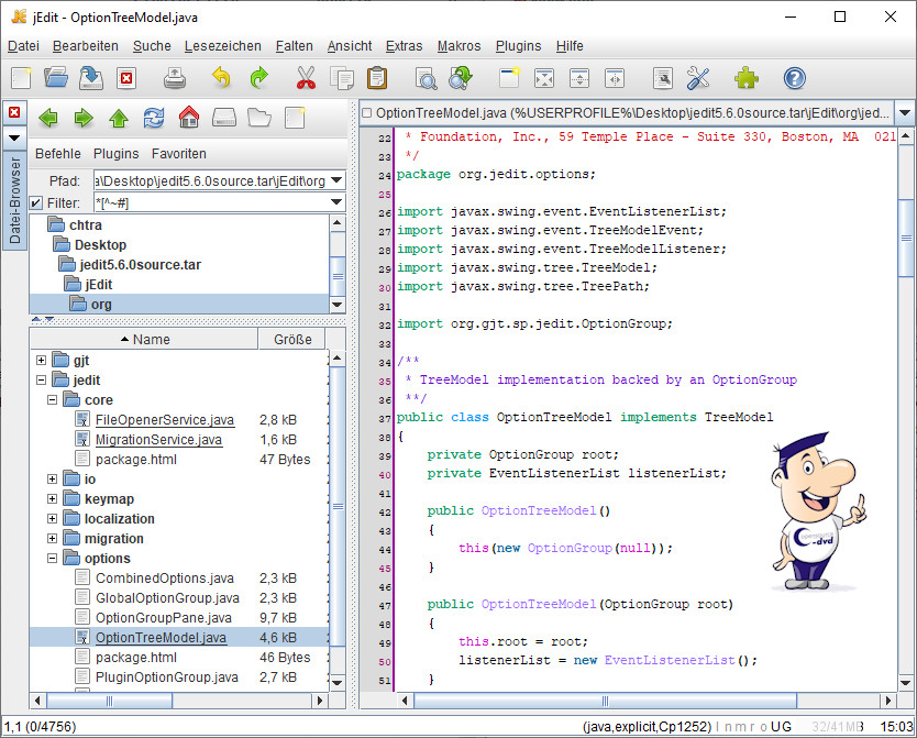Der in Java geschriebene Texteditor, eignet sich besonders für Anwender, die sehr häufig Textdateien bearbeiten müssen. Dazu zählen auch alle Programmierer, für die das Programm ein Befehlshighlighting für über 200 Programmiersprachen (HTML, PHP, C++, ASP, XML, CSS, Javascript usw.) bereithält. Öffnen Sie mit jEdit eine beliebige Anzahl von Dateien. Während des Bearbeitens der Textdateien setzt die Autosave-Funktion ein, die regelmäßig die Änderungen automatisch speichert. Mehrere, immer wieder kehrende Arbeitsschritte legen Sie als Makro ab, welches Sie jederzeit wieder ausführen können.