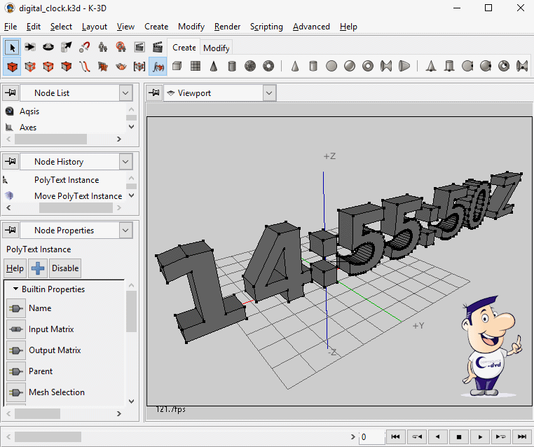 Mit K-3D modellieren Sie 3D-Objekte, die Sie als Grafik oder Animation rendern können. Für das Gestalten der dreidimensionalen Grafiken stehen vordefinierte geometrische Figuren zur Verfügung, die Sie nach Belieben modifizieren, texturieren und beleuchten können. K-3D wurde mit einer hierarchischen Undo/Redo-Liste ausgestattet. Nachdem also ein früherer Zustand wiederhergestellt und verändert wurde, stehen die Änderungen, die nach dem wiederhergestellten Änderungsschritt erfolgt sind, trotzdem noch zur Verfügung. Mit K-3D haben Sie Einfluss auf die Beziehungen der einzelnen Bildobjekte untereinander. Bspw. müssen bei der Animation einer menschlichen Figur die Teile des Modells in vielfältiger Relation miteinander stehen, damit sich ein natürlicher Eindruck ergibt. Beim Laufen bewegt sich zunächst der Oberschenkel am Hüftgelenk.