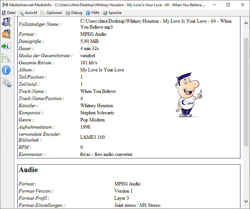 MediaInfo liefert technische und zusätzliche Tag-Informationen über Video- und Audiodateien. Dadurch erfahren Sie bspw., welchen Codec Sie benötigen, um ein bestimmtes AVI-Video abspielen zu können. Weitere Auskünfte zu Videos in Formaten wie MKV, OGM, AVI, MPEG1, MPEG2, MPEG4, DVD erhalten Sie über Bitrate, Auflösung, Bildwiederholungsrate und Seitenverhältnis sowie zu Audiodateien in den Formaten wie OGG, MP3, WAV, RA, AC3, DTS, AAC, M4A, AU, AIFF über Samplingrate, Kanäle, Sprache, Bitrate usw.