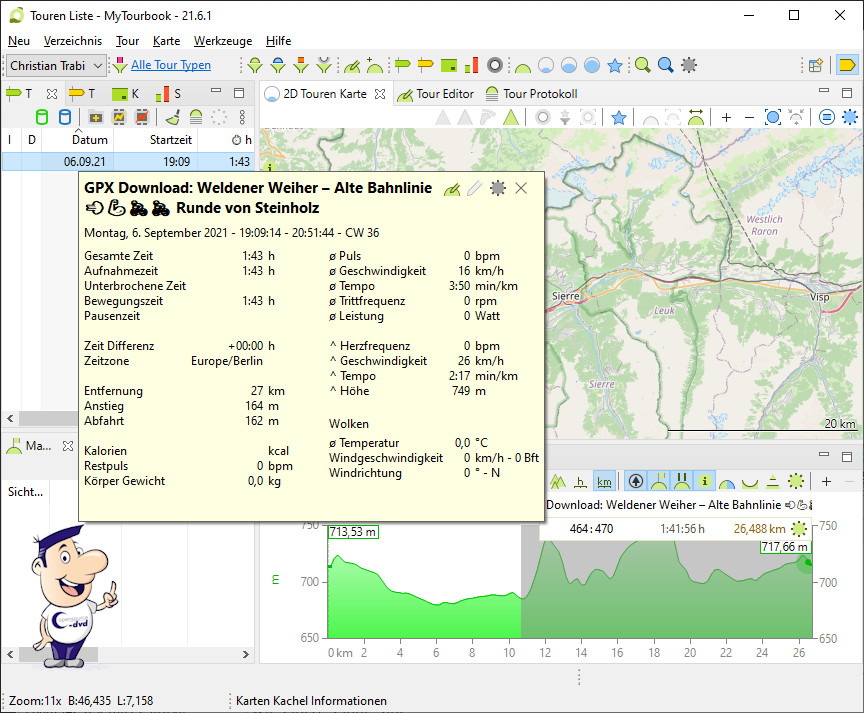 MyTourbook eignet sich zum Auswerten Ihrer sportlichen Aktivitäten. Es importiert Tourdaten entweder direkt vom Sportcomputer oder aus einer Datei (GPX, CSV, FIT etc.). Nach dem ersten Start lassen sich die Benutzervorgaben eintragen (Werkzeuge - Einstellungen - Personen). Neben den Daten zu Ihrer Person und ggf. zu Ihrem Sportcomputer wählen Sie unter "Pulszonen erstellen" eine beliebige Option aus. Sind Ihnen dazu bereits persönliche Zahlen bekannt, dann tragen Sie diese Werte über "Pulszonen bearbeiten" ein. Nach dem Einlesen der Tour wird sie mit Datum und Startzeit aufgelistet. Nun müssen Sie die Tour über das Kontextmenü abspeichern (Tour speichern für [Ihr Name]).