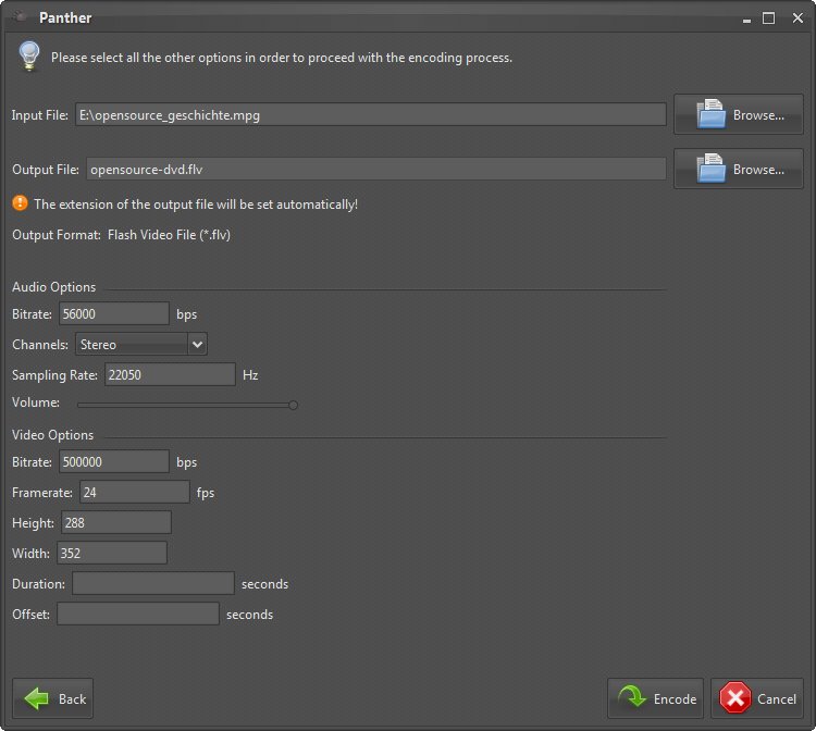 Die Video-Zielformate sind 3GP, AVI, FLV, MOV, MP4 und MPG. Für den Videobereich können Sie auch auf Voreinstellungen zurückgreifen (Browse for a custom preset). Dabei handelt es sich um XML-Dateien, die man bei Bedarf anpassen könnte. Sie befinden sich im Programm-Unterordner presets. Panther benutzt für das Konvertieren die bekannte Codec-Sammlung FFMPEG.
