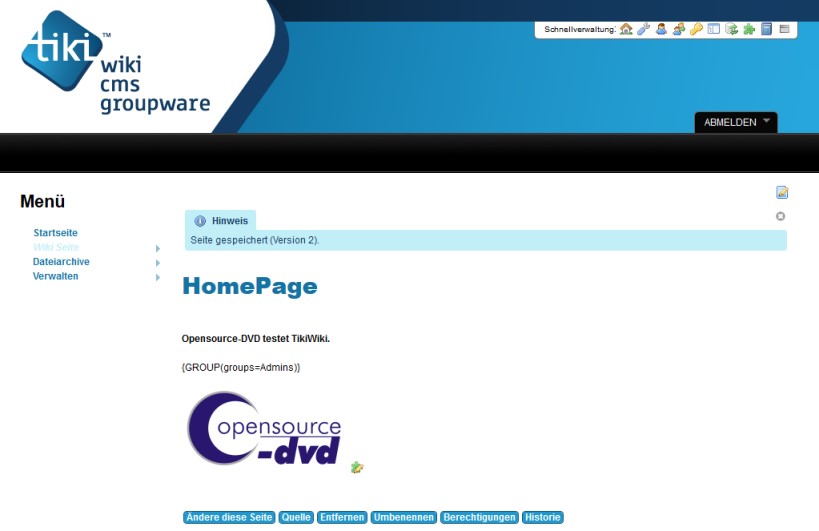 Benutzername: tikiadmin