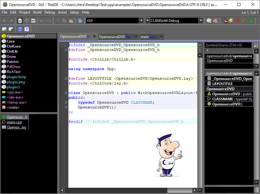 Ultimate++ ist eine C++ Entwicklungsumgebung, TheIDE genannt, die alles enthält, was zur Programmerstellung benötigt wird. Nach dem Programmstart öffnen Sie entweder ein vorhandenes Paket oder beginnen ein neues (New package). Versehen Sie ein neues Projekt mit einem Namen und verwenden bei Bedarf ein Template wie "CtrlLib application with main window". Im linken Fensterbereich haben Sie Zugriff auf die Programmbibliotheken. Sobald Sie auf den Projektnamen klicken, wird u. a. die Datei [Projektname].lay aufgelistet. Durch das Markieren dieser Datei wird der Layout Designer aufgerufen, mit dem Sie schnell Fenster, Eingabefelder etc. anlegen können.