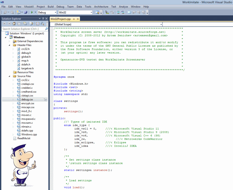 Der Bildschirmschoner "schreibt" Zeile für Zeile Befehle in Programmiersprachen wie Visual Basic, JAVA und C++. Als Entwicklungsumgebungen stehen Microsoft Visual C++ und Studio sowie CodeWarrior, Eclipse und IntelliJ IDEA zur Auswahl. Selbstverständlich müssen diese IDEs nicht installiert sein, da es sich lediglich um eine Simulation handelt.
