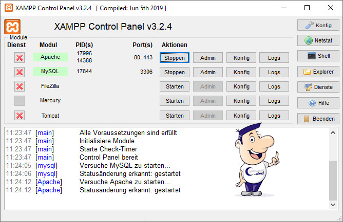 Mit XAMPP installieren Sie schnell und einfach eine PHP-, Apache- und MySQL-Entwicklungsumgebung. Dadurch lassen sich Programme offline testen, die normalerweise auf einen Internetzugang angewiesen sind. Das Paket installiert den Webserver Apache HTTPD, PHP, MariaDB und PHPmyadmin sowie einige weitere Tools wie den FileZilla FTP Server und den Mercury Mail Server. Außerdem ist auch Perl bereits integriert, das den lokalen Webserver um einen Perl-Interpreter für Skripte erweitert.