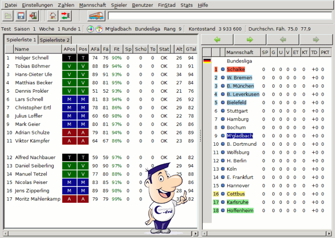 Die Namen der Spieler sind frei erfunden, lassen sich aber ändern. Nach dem Spielstart wählen Sie ein Land und eine Liga aus. Markieren Sie danach eine Mannschaft, tragen einen Benutzer ein, klicken auf "Benutzer hinzufügen" und danach auf den Los!-Button. Jetzt kann die Saison beginnen.