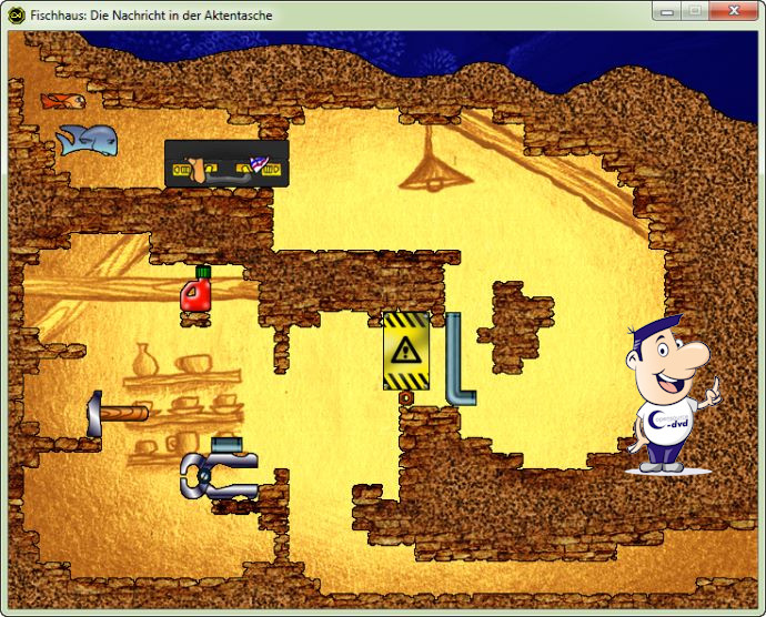 Mit der Leertaste wechseln Sie zwischen den beiden Fischen und mit den Pfeiltasten bewegen oder mit der Maus bewegen Sie die Fische. Die Anzahl der Schritte wird gespeichert, Sie können sie mit der besten Lösung vergleichen. Das Intro zeigt die Rahmenhandlung: ein Ufo landet unfreiwillig in der Nähe des Fischhauses. Dieses Spiel hat es wirklich in sich. Sie haben sicherlich etliche Fehlversuche, bis Sie endlich den Ausgang freibekommen. Viele Fallen, einige Sackgassen, herabstürzende Gegenstände, all das und vieles mehr muss bezwungen werden.