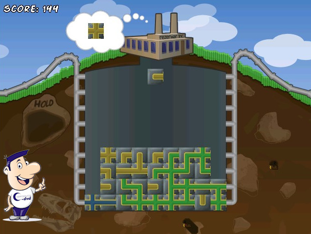 In der Tiefe eines Bergwerkschachts müssen herabfallende Rohre geschickt verlegt werden. Ziel ist es, ein in sich geschlossenes Leitungssystem zu einer der Schachtwände aufzubauen, das sich dann auflöst und für neue Rohre Platz schafft. Dabei gilt die Regel: Je länger die Pipeline, desto mehr Punkte! Das frei räumen ist deshalb so wichtig, weil von unten her Rohre nachgeschoben werden und Sie so lange wie möglich verhindern müssen, dass die obere Grenze erreicht wird und das Spiel zu Ende ist.