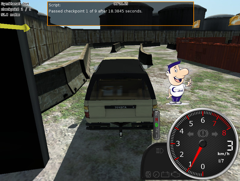 RoR ist eine sehr realistisch wirkende Fahrsimulation, auch wenn die grafische Darstellung das nicht gleich vermuten lässt. Nach der Auswahl einer Karte sehen Sie zunächst kein Fahrzeug. Fahren Sie mit dem Mauszeiger nach oben. Es erscheint eine Menüleiste. Über Simulation - "Get new vehicle" stehen Trucks und ggf. Transportcontainer, Busse, Boote und Flugzeuge zur Auswahl. Gesteuert wird mit den Pfeiltasten. Mit ENTER wählen Sie ein Fahrzeug aus, "P" zieht die Handbremse, TAB zeigt die Karte der Umgebung, "H" aktiviert die Hupe, "N" macht alle Scheinwerfer an, "Shift" beschleunigt und "C" stellt die Sichtweise um.