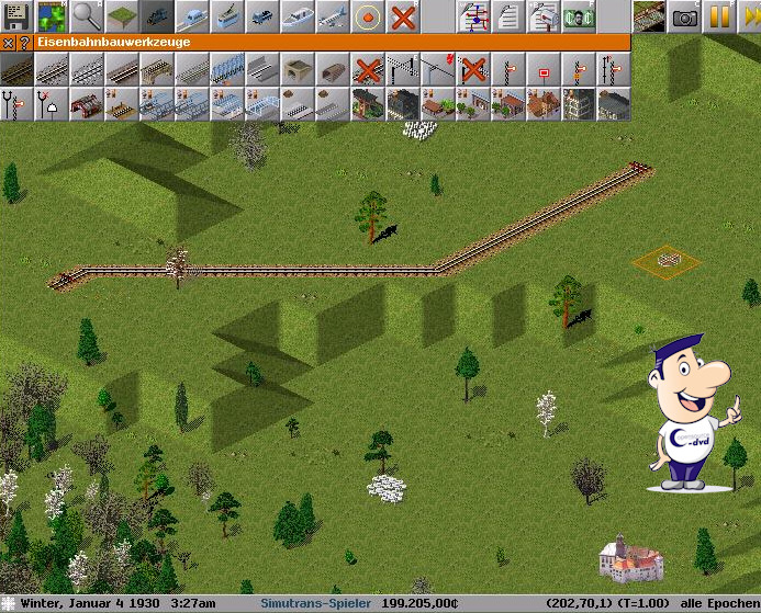 Vor Spielbeginn können Sie etliche Einstellungen vornehmen, von der Größe der Spielfläche angefangen, über Anzahl der Städte und Flüsse, Industrien und Kraftwerke bis hin zum Klima. Die Simulation kann per Schnelllauf beschleunigt werden, so können Sie den Bau eines Gebäudes oder einer Anlage leicht beobachten. Je mehr Transporte erfolgreich waren, desto größer wird die Einwohnerzahl einer Stadt. Bei der Installation sollten Sie zusätzlich ein Häkchen vor pak64.german setzen.